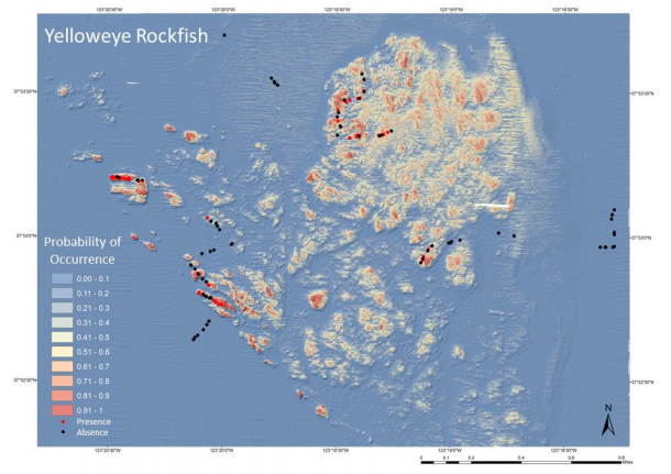 We use geospatial thinking to uncover solutions to environmental problems. For example, we developed species distribution models to predict where threatened species of rockfish occurred beyond the limited sampled areas to inform resource management staff on where to designate Essential Fish Habitats. We’ve also conducted vegetation mapping for dune habitat restoration planning, sudden oak death and native grassland grazing effects in Monterey County.